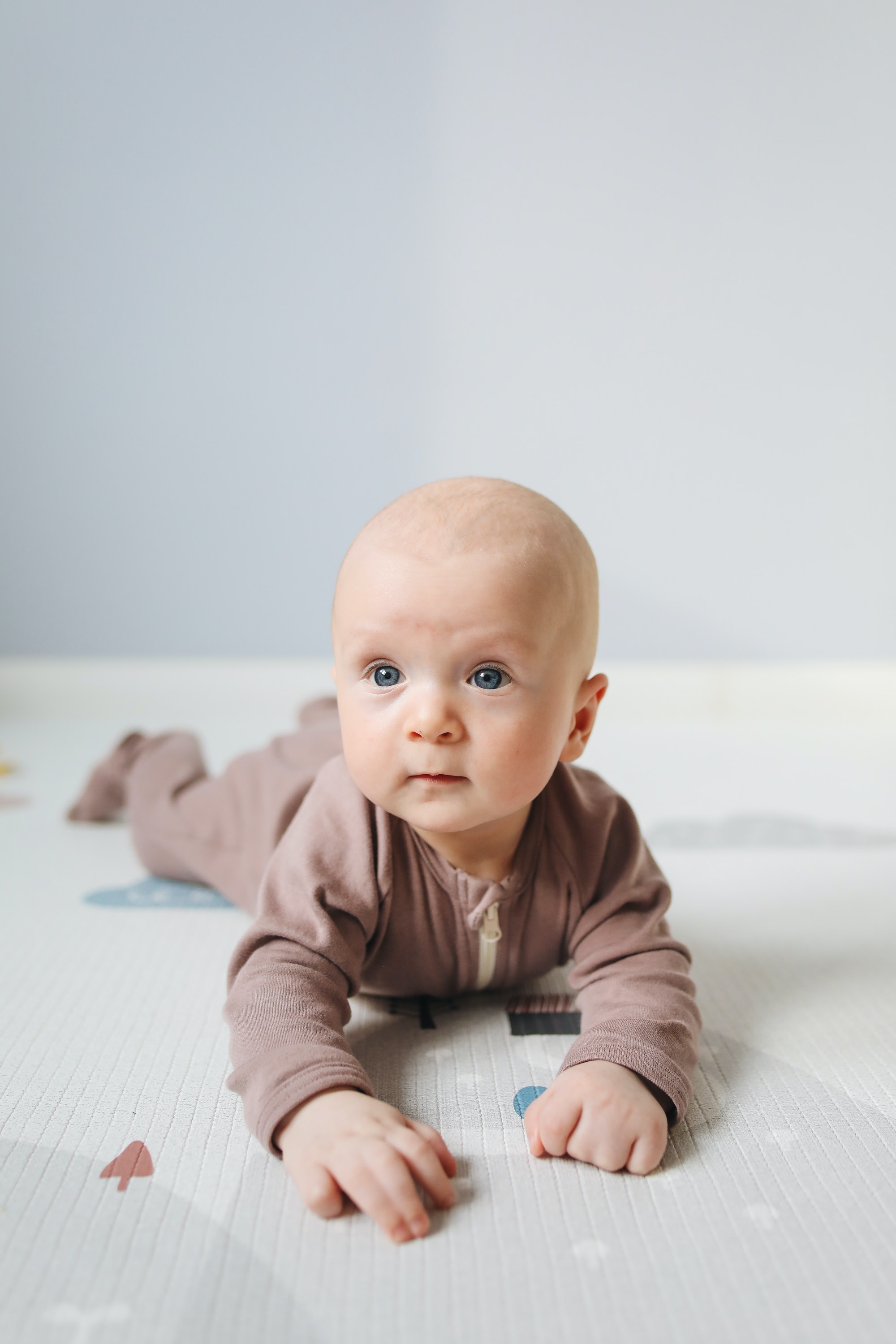 아기가 깨어 있는 동안 배를 바닥에 두고 시간을 보내도록 하십시오. 이는 목과 상체의 힘을 키우는 데 도움이 되며 아기가 머리를 들고 다양한 방향으로 돌릴 수 있도록 도와줍니다.